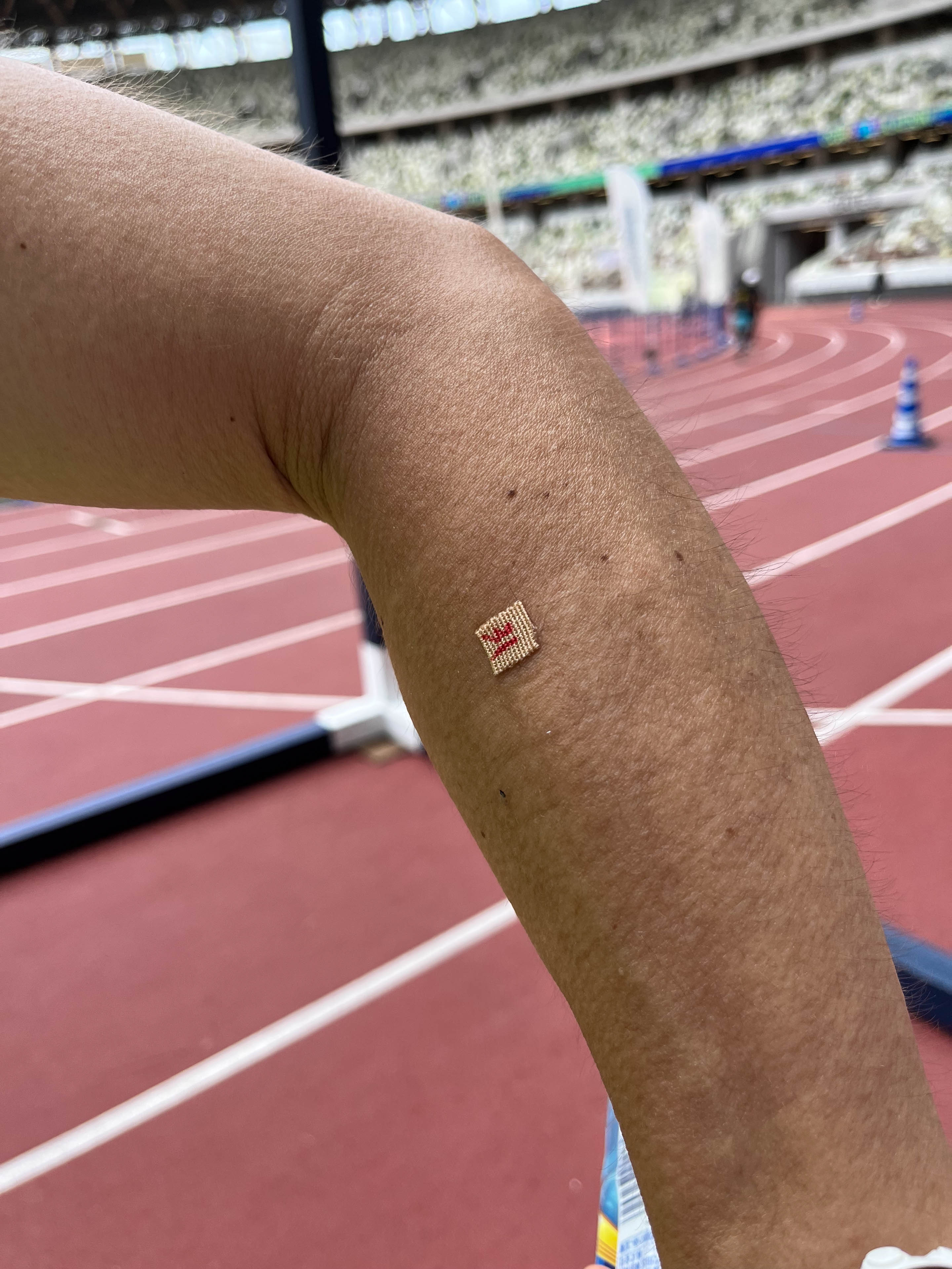 当日が近づくにつれて焦りも感じていたが、準備だけは入念に行った。ウェアやシューズ、補給食の選定、タイムテーブル作成。周回数がわからなくならないように、細かく切ったテープを31枚、腕に貼ってラップのたびに剥がすことにした。