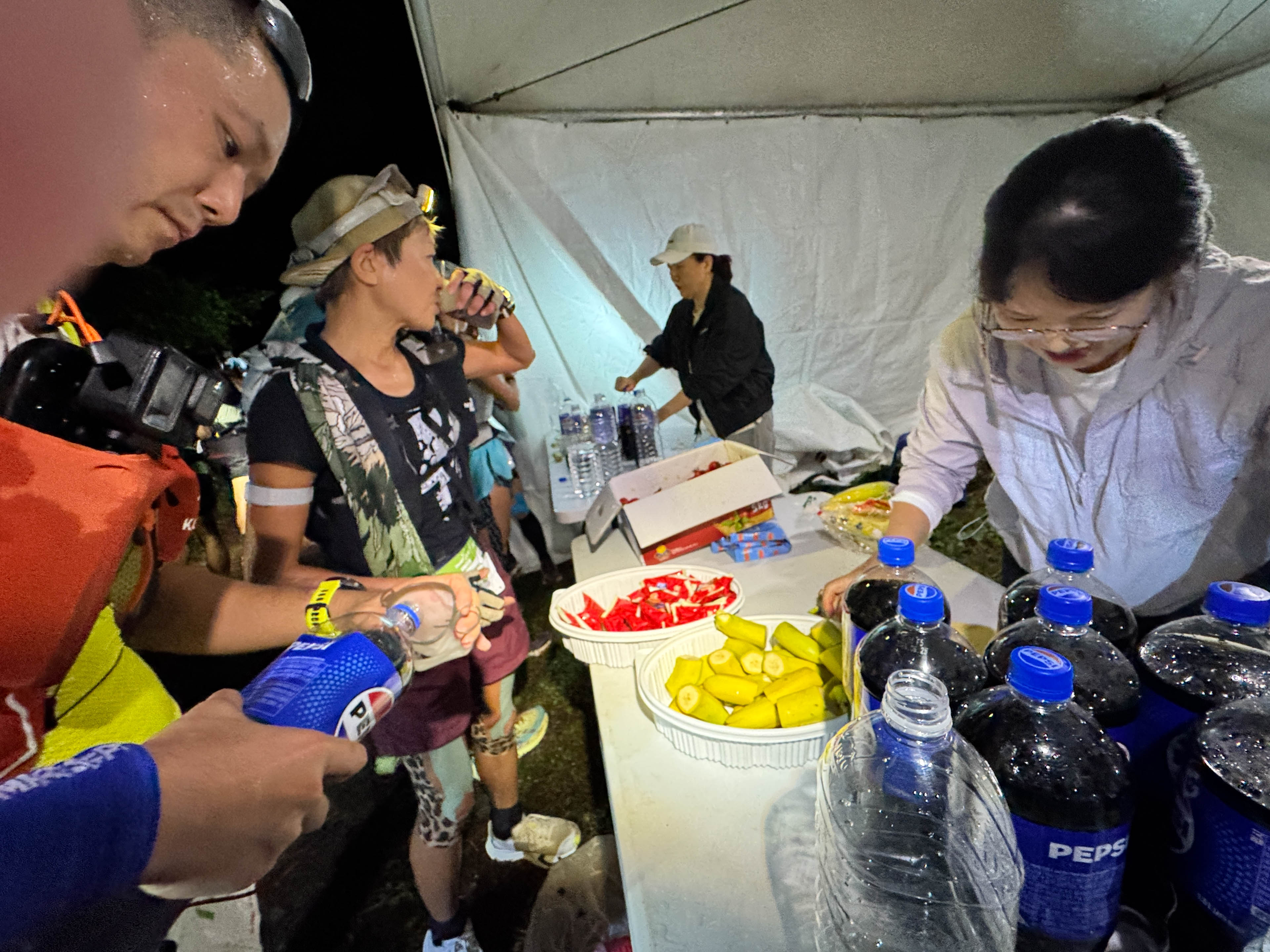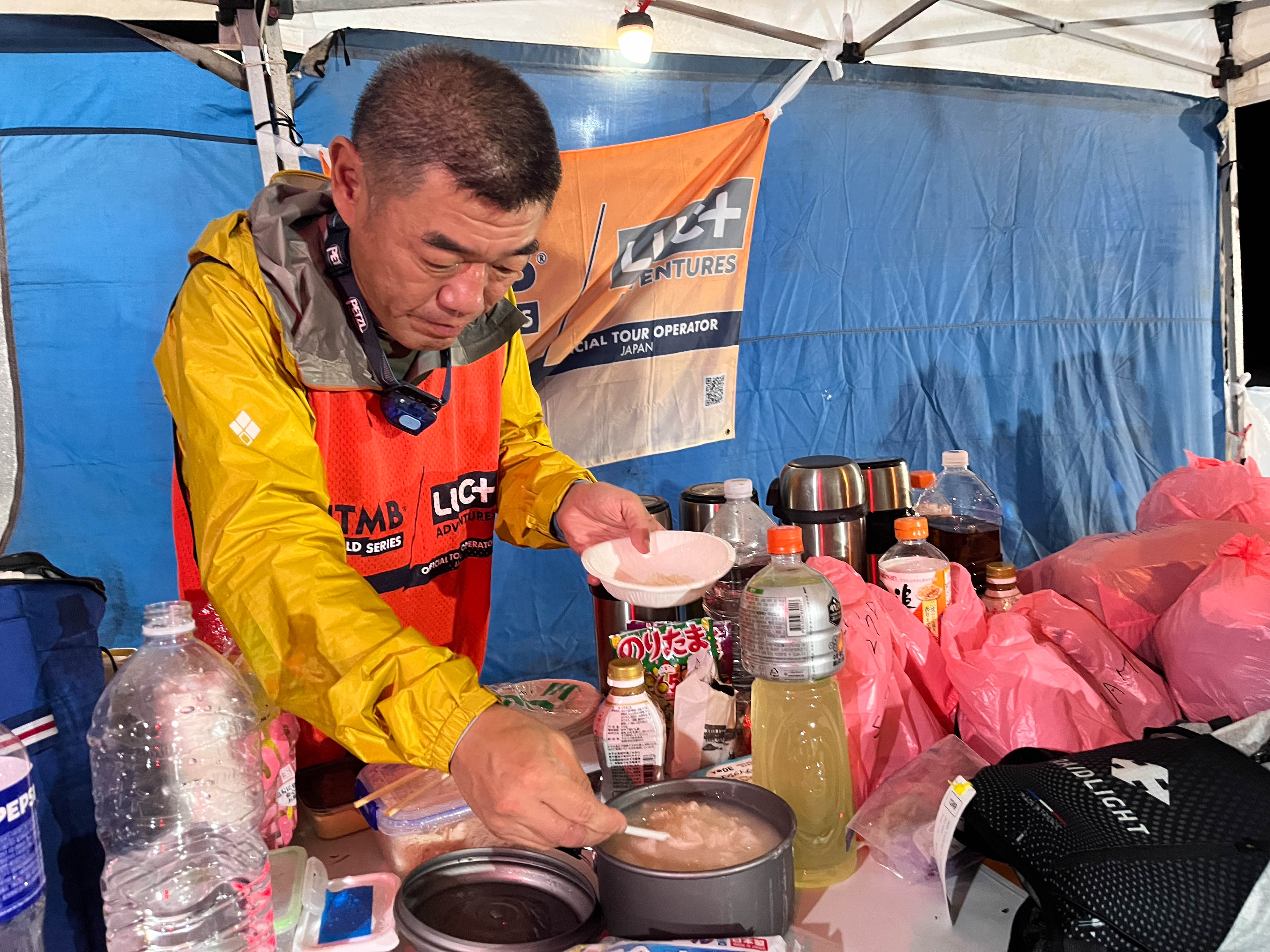 夕方4時半ごろ、前のエイドより149位も順位を上げてCP5に滑り込んだ。長大な登り下りですっかり疲れていたが、ここで一息つく間もなく次の準備に取り掛かる。