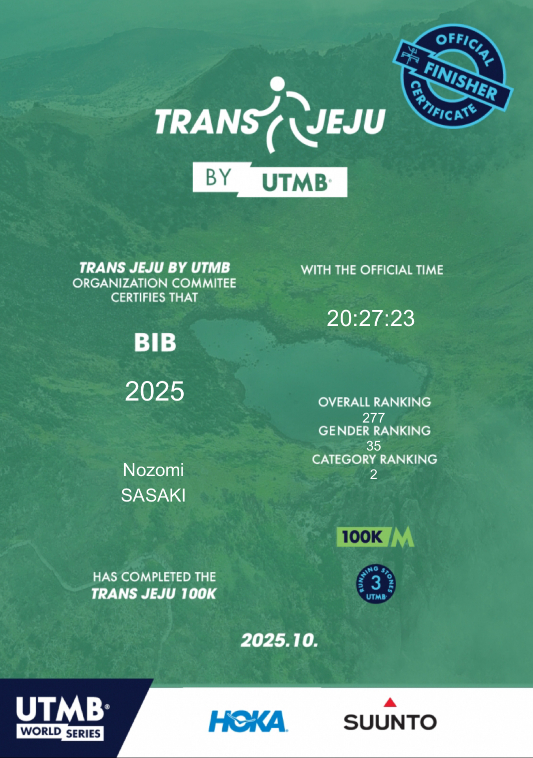 2025年6月に日本で初めて開催されたUTMBワールドシリーズ「Kaga Spa Trail Endurance100」に続いて、「TransJeju by UTMB」の「Jeju100K」に挑戦した。最終目標は2027年の「UTMB」 (Ultra Trail du Mont-Blanc)完走だ。