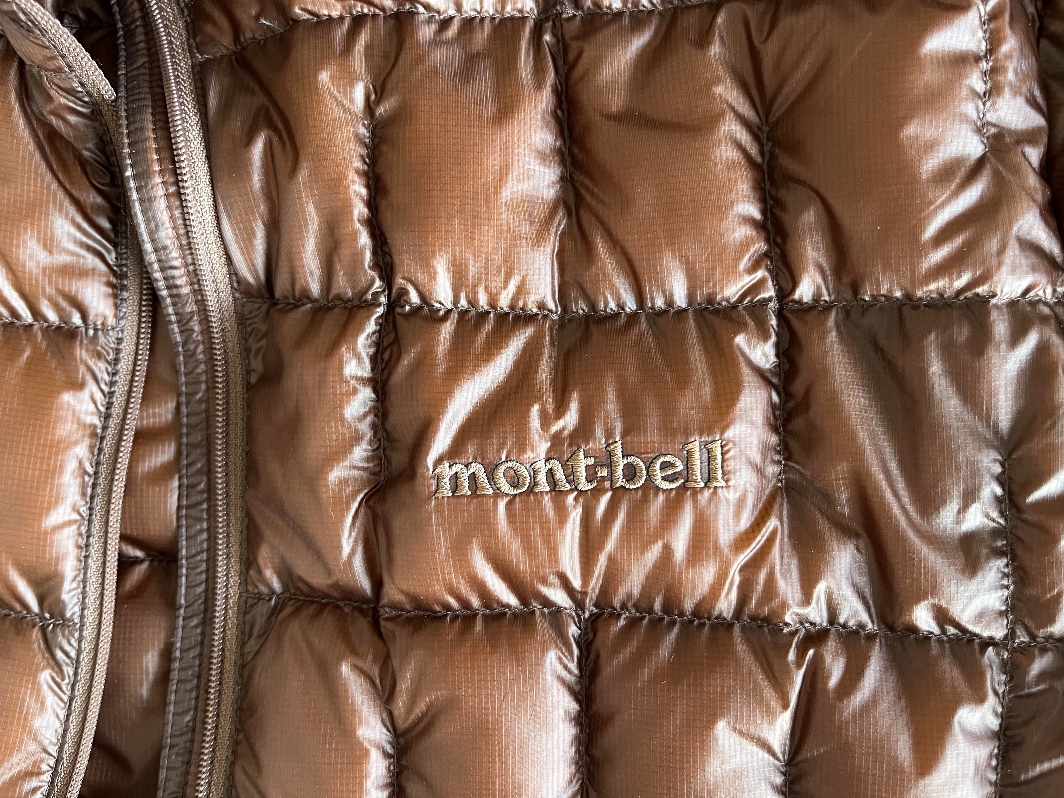 買ってから気づいたことがもうひとつ。ブラウンの生地に薄いグレーで刺繍されたmont-bellの文字が、思ったよりずっと目立つのだ。