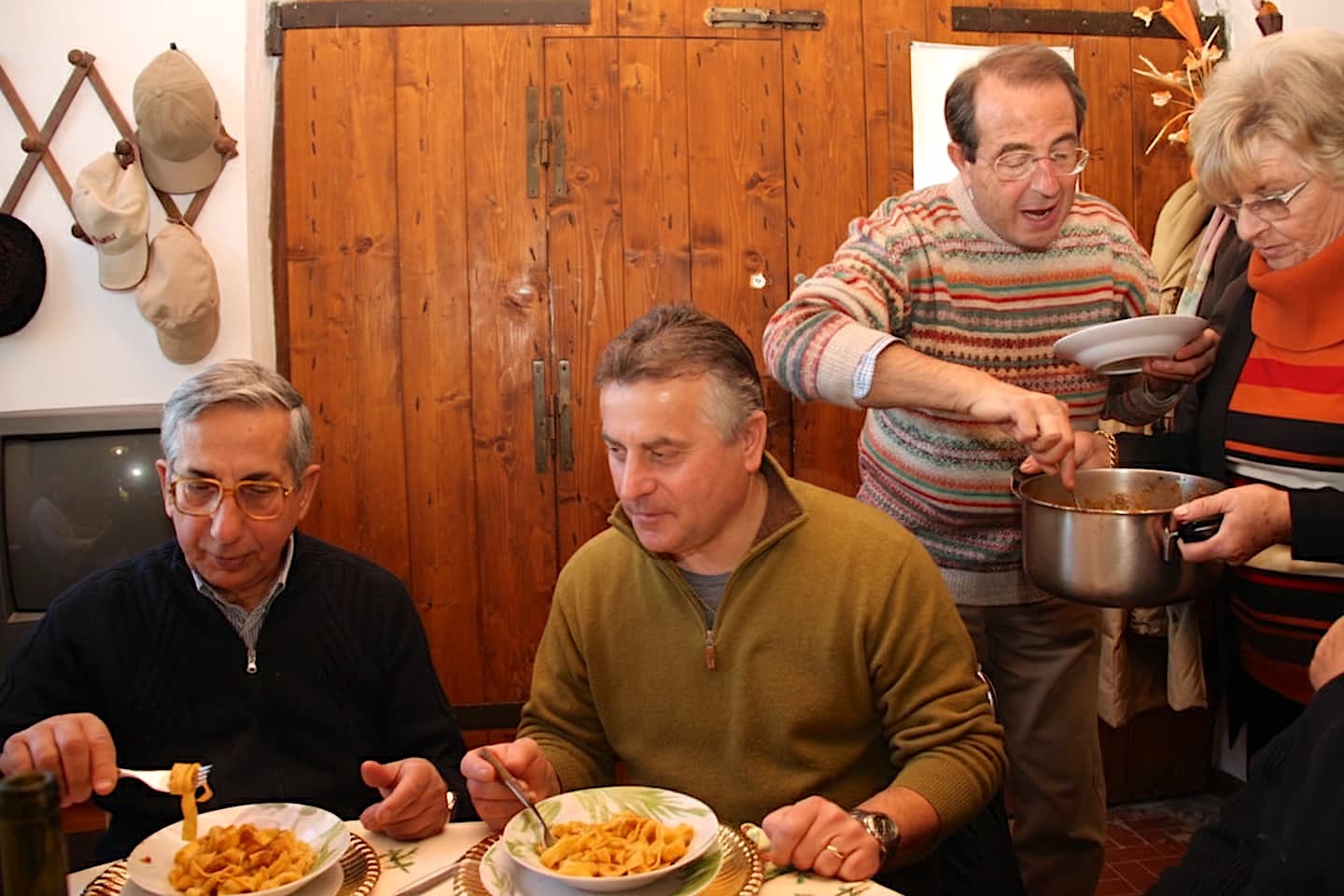 小粋な前菜に始まり、続いてパスタ。しかも一皿とは限らない。ロングパスタのあとに、焼きたてのラザニアが登場することもある。さらに気前よく、数種類の肉料理が運ばれ、付け合わせの野菜も山盛りだ。その頃には、「なぜ前菜の生ハムとチーズをおかわりしてしまったのか…」などとという後悔が、確実に押し寄せてくるに違いない。